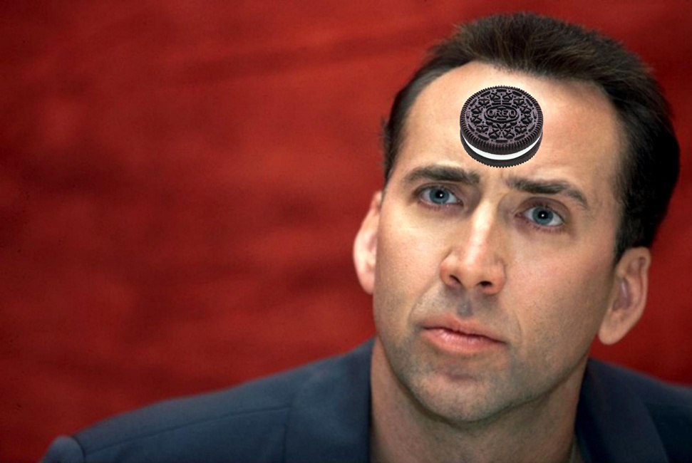 Nicholas Cage never had so much fun! Start with a cookie on your forehead and using nothing but your facial expressions, get it into your mouth!