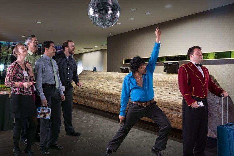 Some conference attendees will be experts at the art of networking while others might need a poke/nudge/shove to get them talking to strangers. (Our orange jumpsuited crew is always down to chat with anyone.) For those who struggle with chitchat, a quick “hello” during the coffee break isn’t enough- an interaction has to be organic (or at least feel organic). To help, split attendees off into smaller, more manageable teams. You can split them up by department, randomly, or any way you like. Have each team create a unique name for themselves like The Ninjas, The Marketing Mavens, or The Sales Sharks. From there you can choose from a plethora of group activities from team projects, to group discussions and problem-solving scenarios. Or have them compete as a team all conference long for prizes with competitions ranging from tasks designed to encourage networking to challenges that reinforce what’s being covered at the conference.
