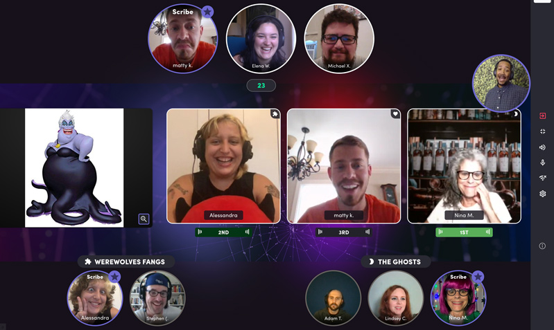 Once logged into your private event space on our platform Weve (that's correct - this is not another event on Zoom!), your attendees will be assigned to a game room where they will participate in Halloween Game Show experience. They will compete with a team, earning points as they enjoy all of the following "mini-games" or "activities" hosted live by our professional and entertaining Go Game staff."