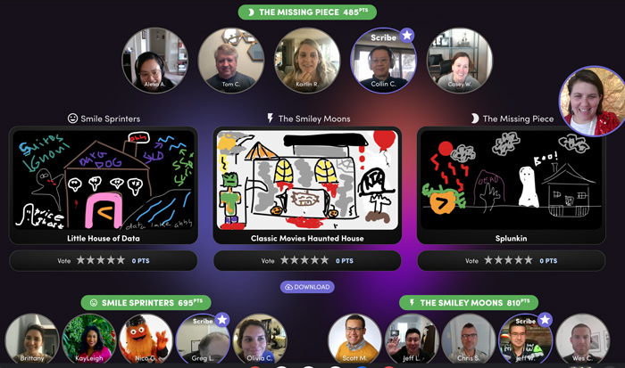 Dressing up is more fun in teams! Our Halloween costume contest creates a space for players to show off their costumes virtually, vote for their favorites, and photograph the evidence. Winners are revealed in an awards show ceremony, so don’t get scared off from participating in this one.