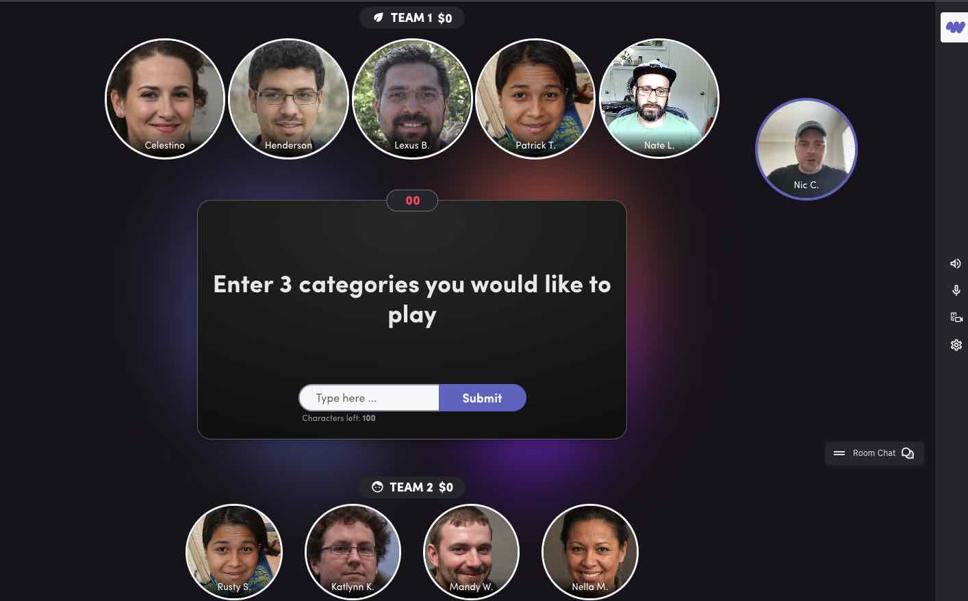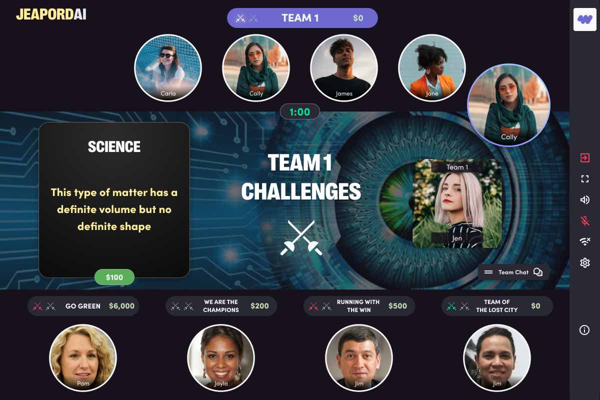 Every game is custom, giving you the power to tailor the experience to your team's ages and interests. Dream up categories that interest you most (random and ridiculous ones are not only welcome, they're encouraged) and JeopardAI will generate a one-of-a-kind game just for you.