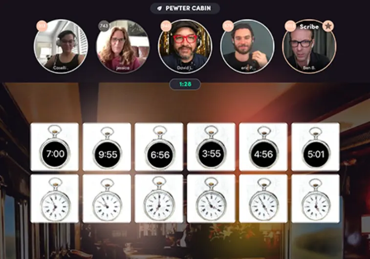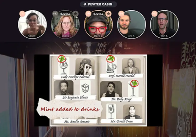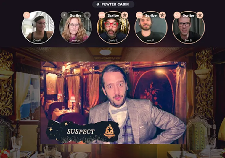 Once logged into your private event space on our platform (that's correct - this is not another event on Zoom!), your attendees will be assigned to a game room where they will participate in our virtual Murder on the Mystery Express experience. They will compete with a team, earning points as they enjoy all of the following "mini-games" or "activities" hosted live by our professional and entertaining Go Game staff.