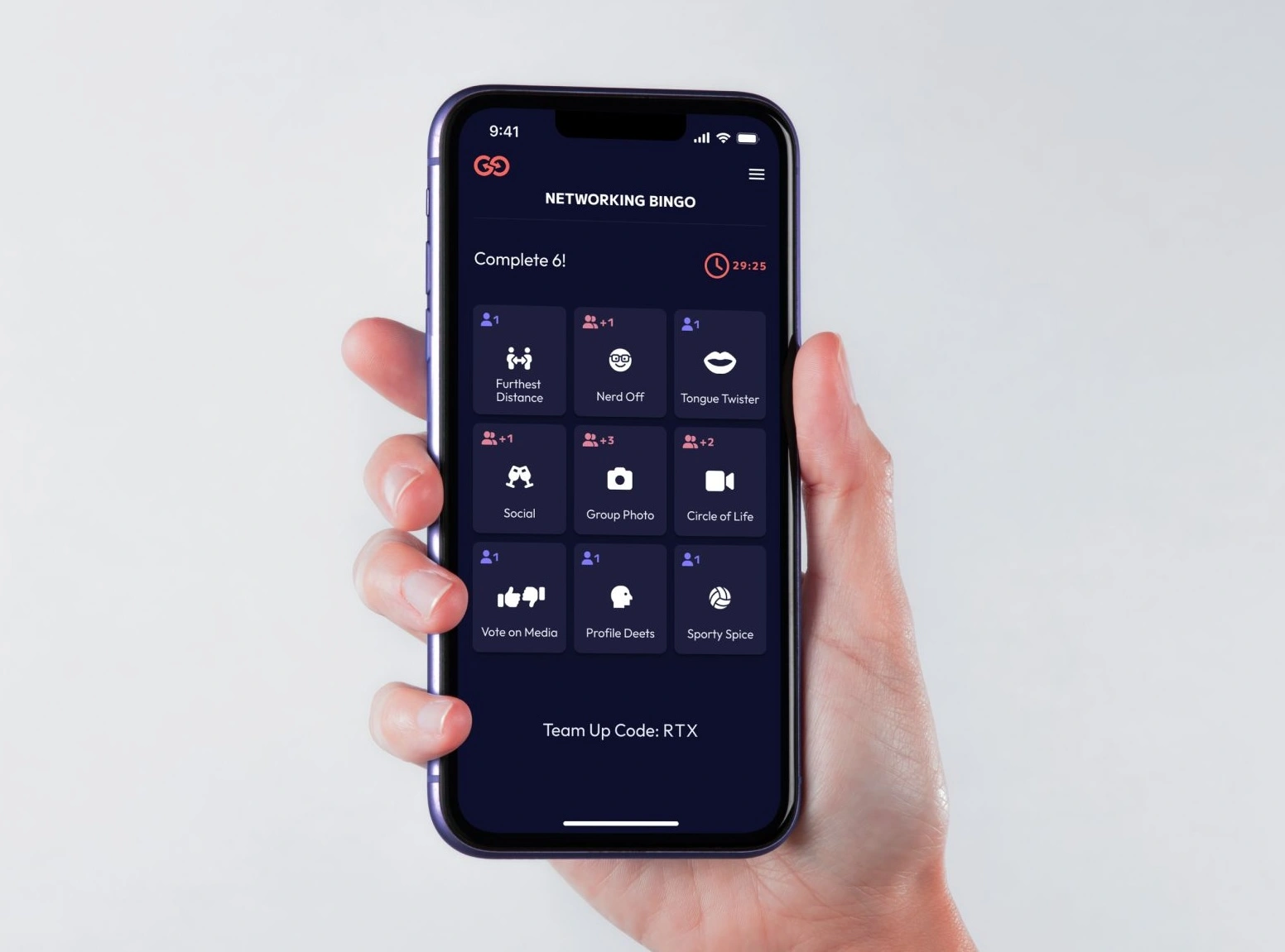 Our new Networking Bingo experience is perfect for small groups looking to get to know each other a bit better or for big events that want to feel a bit more like a village. Based on the Bingo board, each player has squares they have to fill by doing something - whether it's by finding someone wearing argyle socks or by grabbing a partner to film a silly video.