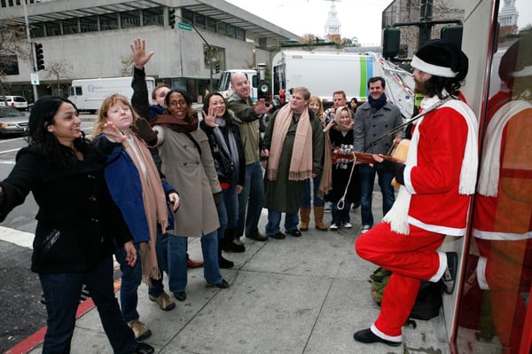 We'll bring the band leader, drums and piles of percussion instruments to prove that your coworkers have more rhythm than a shaking Santa. Pa rum pum pum pum!