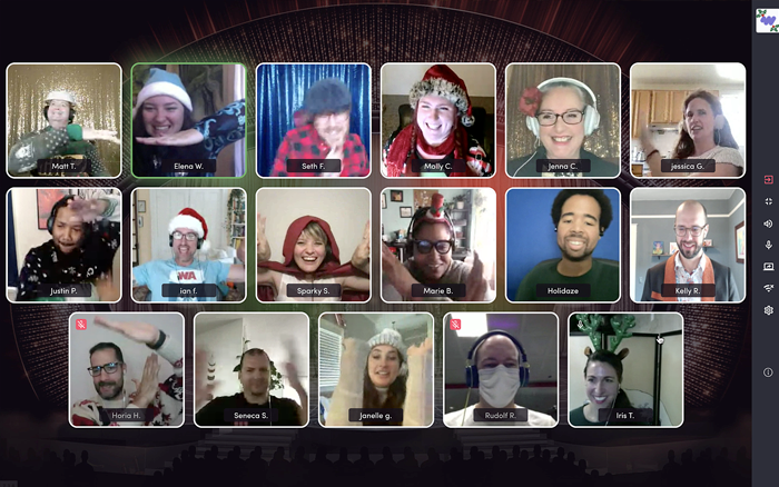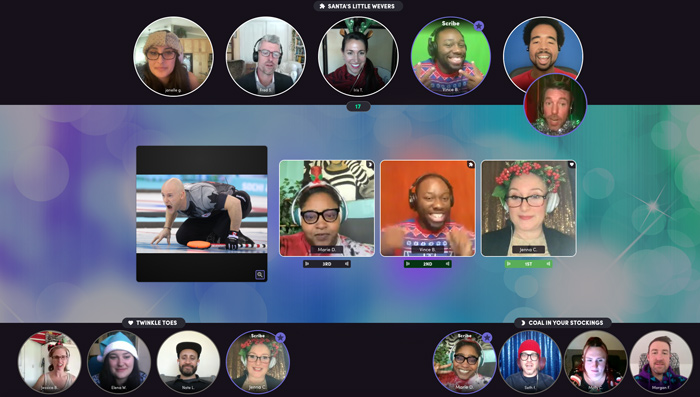 Once logged into your private event space on our platform (that's correct - this is not another event on Zoom!), your attendees will be assigned to a game room where they will participate in our virtual Winter Wonderland experience. They will compete with a team, earning points as they enjoy all of the following "mini-games" or "activities" hosted live by our professional and entertaining Go Game staff.